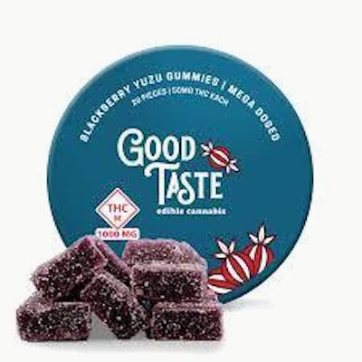 The Good Taste Blackberry Yuzu Gummies are a potent cannabis edible, containing 1000mg of THC per package, with each gummy delivering 50mg of THC. These gummies combine the rich, tangy flavor of ripe blackberries with the bright, citrusy zing of yuzu, offering a unique taste experience. Possible effects include: Intense euphoria for mood enhancement Deep relaxation for a calming effect Enhanced creativity to stimulate the mind Potent relief from pain and discomfort Long-lasting effects due to high THC content These gummies are crafted with a perfect balance of pectin and gelatin for maximum flavor and texture.