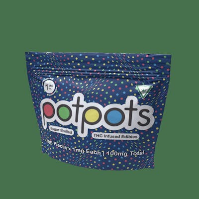 Now introducing our newest product.. dark chocolate potdots! Potdots are 1mg THC infused candy-coated dark chocolate pieces that are crafted from gourmet Belgium chocolate. Microdosable, snackable, shareable. Each package contains 100 individual 1mg THC pieces. 100mg THC Total. Gluten Free. GMO Free.