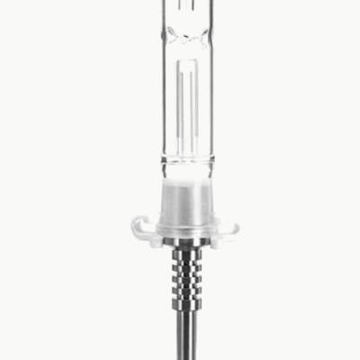 This 14mm Bubbling Honey Straw comes with a 14mm titanium tip, k-clip and sturdy glass body. This is called a bubbling honey straw because it's designed to be filled with water. The water will cool down the concentrate vapor for a smoother hit.