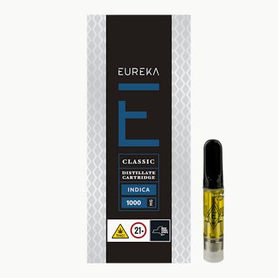EUREKA’s Classic Distillate Cartridge delivers a pure and potent vaping experience in a convenient, 510-thread format. Crafted for the connoisseur, this 1g cartridge uses high-potency oil that is 100% natural, pesticide-free, and solvent-free. It is never cut with additives like MCT, PG, VG, or Vitamin E Acetate, ensuring a clean and consistent draw every time. Strain Profile Type: Indica. Potency: This batch typically tests between 81% and 88% THC. Ingredients: Solvent-free distillate with cannabis-derived terpenes. Aroma & Flavor Profile: Features a bold, hashy flavor profile with a distinct jet fuel and diesel taste. Notes: The pungent, earthy tones are perfectly balanced by a finish of sweet blackberries. Dominant Terpenes: High in Limonene, providing a bright, citrusy lift to the heavy, earthy base. Effects & Best Uses Experience: Known for producing deeply relaxing effects and a powerful, full-body high. Mind: Users frequently report feelings of happiness and bliss before transitioning into a sleepy, tranquil state. Best For: Ideal for evening or nighttime use, helping to melt away stress, manage chronic pain, or support a restful night's sleep.