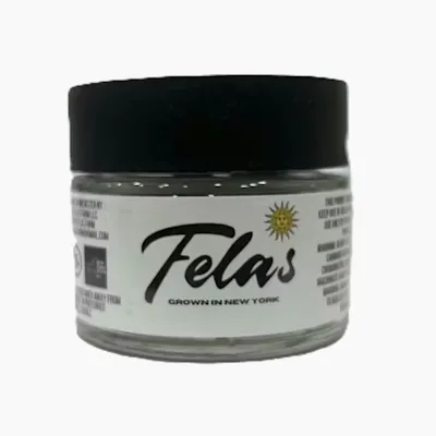 Fela’s Banana Cream Pie is a potent, premium flower that delivers a decadent dessert-themed experience. This cultivar is prized for its rich, aromatic profile and balanced hybrid effects that lean toward deep physical relaxation. Strain & Flavor Profile Type: Indica-dominant Hybrid. Flavor: A smooth, pastry-like blend of creamy banana and sweet vanilla with subtle nutty and citrus undertones. Aroma: Pungent and sweet, featuring notes of ripe tropical fruit and a distinct herbal, earthy finish. Effects & Experience Main Effects: Euphoric, relaxed, and calming. User Experience: The high begins with an uplifting mental buzz that quickly transitions into a soothing body melt. It is highly effective for evening use to quiet racing thoughts, ease physical tension, and prepare for restful downtime. Technical Specifications Potency: Typically tests with a high THC content of approximately 29%. Lineage: A cross between Girl Scout Cookies and Banana OG (or similarly bread dessert parents). Weight: 3.5g (1/8 oz).
