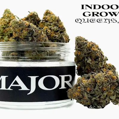 MAJOR Purple Silk is a premium, high-potency indica flower that is often described as a "powerhouse" of relaxation. Cultivated by a team of legacy New York growers in partnership with Fela’s Farm, this small-batch cultivar is celebrated for its artisanal quality and intense "silky gas" profile. Strain & Flavor Profile Type: Indica. Lineage: Purple OG x Bubba Kush. Flavor: A decadent, mouth-coating experience of sweet, silky gas with rich herbal and earthy notes. Aroma: Pungent and "super loud," featuring a bold diesel/gassy base with sweet berry undertones. Effects & Experience Main Effects: Relaxed, sleepy, and happy. User Experience: This strain is known to "knock you on your ass," delivering a heavy, tranquilizing high that melts away the day's tension. It is highly effective for quieting the mind and inducing a deep physical calm. Best For: Evening or nighttime use, managing insomnia, or as a powerful remedy for chronic stress and physical discomfort. Technical Specifications Potency: Exceptionally high-strength flower, with some batches testing at approximately 31.6% THC and reaching a total active cannabinoid (TAC) count of 37.2%. Appearance: Striking "bag appeal" featuring huge, purple dense nugs heavily coated in shimmering white trichomes. Cultivation: Small-batch, hand-crafted in Queens, NY, using organic and sustainable growing practices. Weight: 3.5g (1/8 oz).