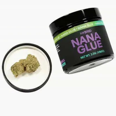 NANA GLUE - HYBRID 3.5G Premium Jarred Flower Slap on your favorite playlist — Nana Glue is here to take you out. A bold, sticky hybrid (GG4 × Banana Butter Cups), this strain is not for the faint of heart. With THC often pushing into the mid-20s or higher, it’s a serious beast. Dense, frosted buds that are nearly dripping with resin. Think pungent gas, sour banana, earthy woods, and a hint of funk. It’s loud, it’s proud. It hits fast — euphoric and uplifting early on, then melts into deep physical calm. Ideal for evening sessions, couch-coasting, or chilling with music and dim lights.