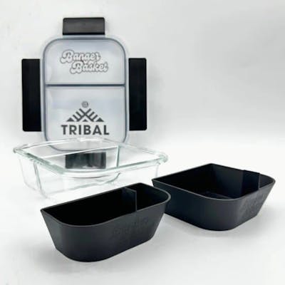 The TRIBAL x LeGrow Creative Banger Basket is a game-changer for dabbing enthusiasts. This branded accessory is designed to effortlessly clean your dabbing tools. Upgrade your dabbing experience with the TRIBAL x LeGrow Creative Banger Basket, where ease of use, durability, and style converge for a cleaner, more enjoyable session. Key Features: Sealable lid (great to keep the ISO smell down, and for traveling) Two compartment split container Two injection molded banger baskets (one for each side of the container) Banger baskets have dividing ridge so 2 nails can be in the soak section without touching Convenient handle to avoid getting hands dirty/sticky in the solution Baskets allow you to leave a nail in a compartment without getting scratched on the go How it works: Fill both sides of the bath with your preferred cleaning solution After your dab, place your dirty nail into the larger side (Soak Side) of the bath Make sure the nail is below 3000 F when you place it in the solution to avoid thermal shock After the nail has soaked, use the hand tab to pull the basket out of the cleaning solution The larger basket is designed to rest suspended above the bath when you rotate it 900 F Transfer your nail from the soak basket into the rinse basket Use a Q-tip to remove any access oil or particulates that may still be on your banger Once your nail is to your desired cleanliness, use a micro-fiber to wipe off the excess cleaning solution, and your nail is ready for its next dab Once the cleaning solution on the “rinse” side is too dirty, use a turkey baster to transfer the solution into the “soak” side Caution: Make sure your basket is full of solution, and that the nail is below 3000F before placing it in the basket, or you can potentially melt the plastic We use 99% ISO in our bath as our solution. ISO is combustible and volatile. Make sure your bath is always CLOSED when not in use, and never operate a flame in a small room or near the bath, as the fumes are combustible. We place my basket on a place mat, as overtime the solution will get spilled around the container, and can cause damage to the surface underneath.