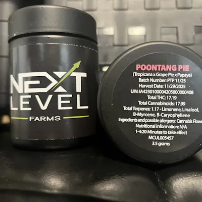 A cross of Tropicana, Grape Pie, and Papaya, the Poon Tang Pie strain is for flavor chasers. It is said to have notes of berry, citrus, and pine. Poon Tang Pie will reportedly leave your mouth watering, mood boosted, and ease you into a full-body euphoria. The name, believed to be a nod to the comedy film Pootie Tang, references the papaya and grape pie lineage that give the strain its sweet, fruity flavors.