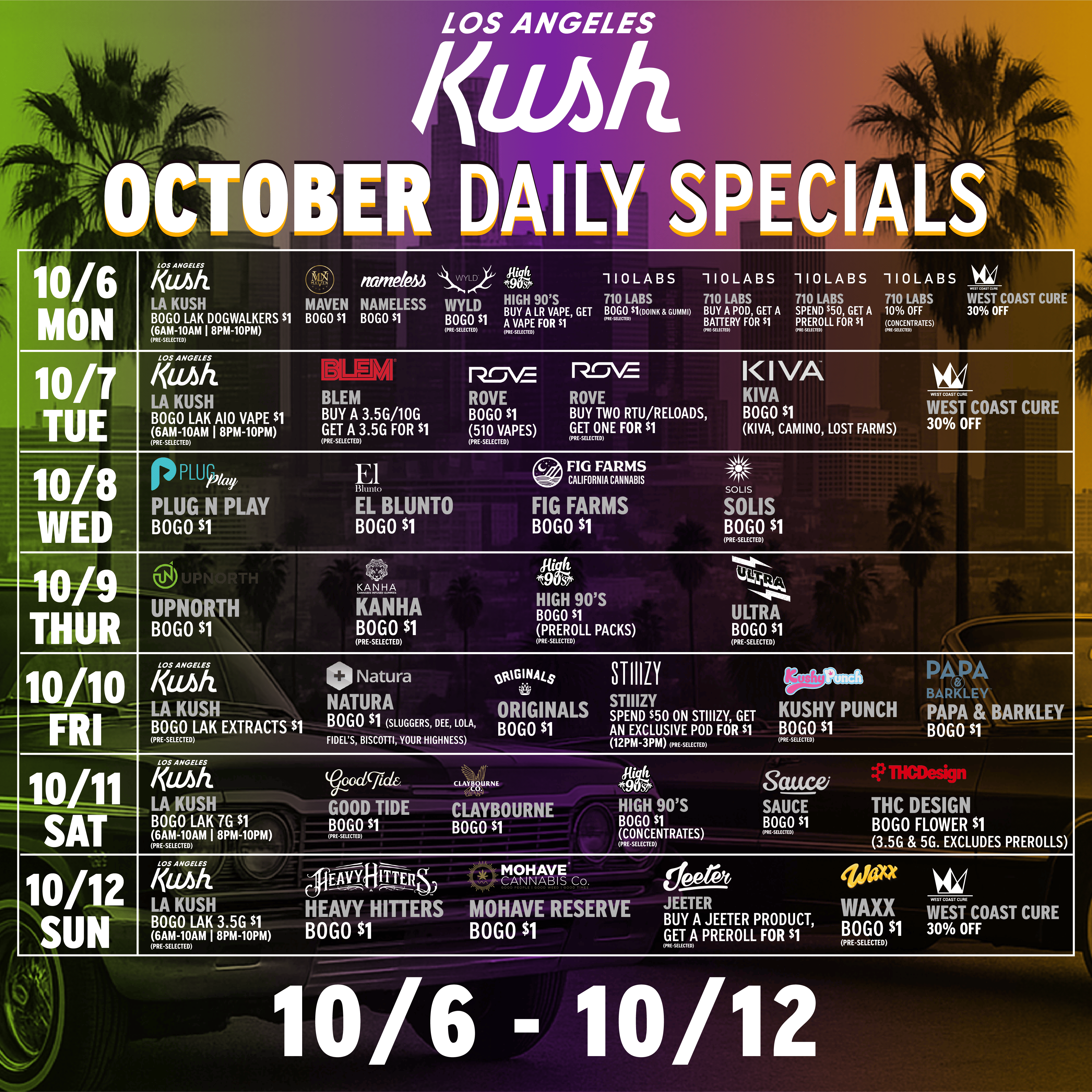 LOS ANGELES KUSH - BUY 2 1G PR'S GET 1 FOR $1