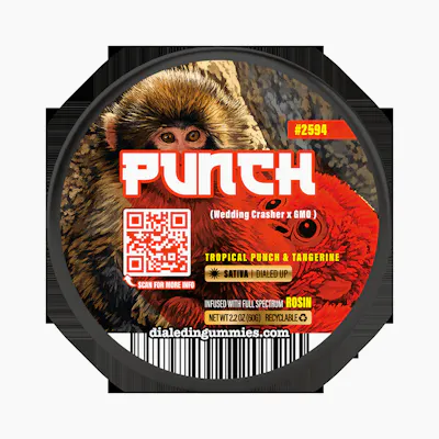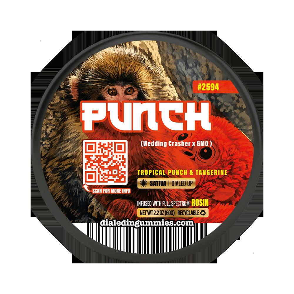 Punch is bringing main-character energy—just like the internet’s newest legend, Punch the Monkey. This lively batch from Boulder Built swings in with a wild mix of Tropical Punch and Tangerine gummies, bursting with juicy citrus and fruit-forward flavor that hits like a perfectly timed uppercut. Bright, bold, and impossible to ignore. Under the hood, Wedding Crasher x GMO delivers a funky-sweet backbone with just enough savory depth to keep things interesting. The vibe? Fast, happy, and a little mischievous. Expect a clear-headed lift, boosted mood, and the kind of playful energy that makes everything feel a little more entertaining. Perfect for daytime adventures, social hangs, or laughing way too hard at something you probably shouldn’t. Punch doesn’t tiptoe into the room—it swings in from the chandelier. One gummy in and you’ll see why this batch (and that monkey) has everyone going bananas.