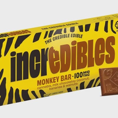 A whole different animal. Milk chocolatey coconut, sweet bananas, and crunchy walnuts. Time to get funky with this monkey. Made with 100% pure cannabis oil in a perfectly blended mixture to ensure accurate dosing and consistency. Perfect for arts and crafts and sweet tooth cravings. Featuring a precision-dosed confection collection with yummy flavors and delicious effects, you can trust incredibles to be the credible edible. Potential effects: Invigorating, energetic, mind-elevating, uplifting Serving size: Standard serving is a single square (10mg THC per piece). Bar contains 100mg THC molded into 10 equal segments. Onset & duration: Onset may take up to 2 hours. Duration can last up to 3+ hours. Effects vary by individual. Estimates are based on a standard serving. Contents: Made with pure THC oil and evenly blended for consistency. Allergens: Milk, soy, walnuts. Made in a facility that processes tree nuts, peanuts, milk, soy, eggs, coconut and wheat. Ingredients: Milk and dark confectionery coating, walnuts, freeze-dried bananas, palm kernel oil, cannabis extract, natural toasted coconut cream extract Storage: Keep in original sealed container between 60° - 80°. Avoid conditions of high humidity and temperature. Keep out of direct light and do not store in hot car.