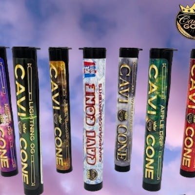 Indulge in the opulent experience of Caviar Gold's Cavi Cone, a carefully crafted 1.5 gram pre-roll filled with top-tier cannabis, expertly infused with 95% distillate, and skillfully blended with kief. Renowned as one of the most potent offerings on the market, it promises an unparalleled high.