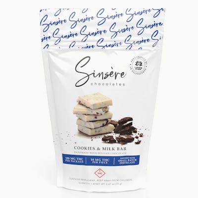 Sinsere - Cookies and Milk Bar - 100mg (Ten Servings x 10mg THC)