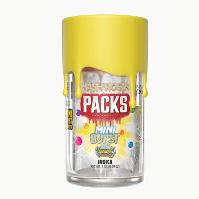 Bursting with flavor, a 5-pack of mini joints, each with a naturally derived fruit terpene ball. -2.5g total weight -.35g Premium flower per joint -.15g ice hash rosin infusion per joint -Each 5pk is equivalent to 1.25g of concentrate -Squeeze & pop naturally derived terpene ball -No trim or shake
