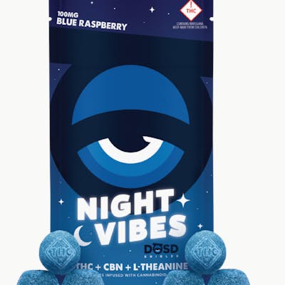 Night Vibes Blue Raspberry (I) - (1:1 THC:CBN) - 100mg Nano Bites - Dosd