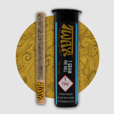 TWAX by The Clear™ is an infused pre-rolled joint for the experienced cannabis consumer. We grind full flower to the perfect consistency for the perfect burn. Then, our proprietary infusion process pumps up the potency for the perfect punch, every time. It provides the potency you need, with the smoothness and burnability you expect. Each pre-roll contains dye-free, unbleached papers, 1 gram of premium bud, and 30-40% THC premium flavored distillate and naturally derived plant terpenes. The TWAX Pre-roll is perfect for heavy and daily consumers. Unlike many flavored products, TWAX flavors pair great with the original terpenes to give a grape twist to selective strains. Recommended for experienced consumers! Infrequent or light consumers start with a small hit and go slow.