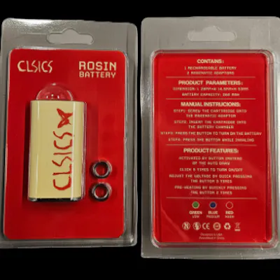 CLSICS offers specialized batteries designed for their solventless live rosin cartridges, including a standard 510-thread vape pen battery and a more compact Palm battery. These devices are engineered to provide the consistent, low-heat power required to preserve the delicate terpenes in live rosin without burning the oil.