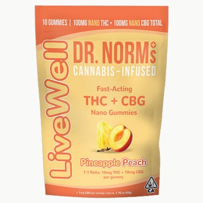 Dr. Norm's - Pineapple Peach 1:1 THC:CBG LiveWell NANO Gummies - 200mg