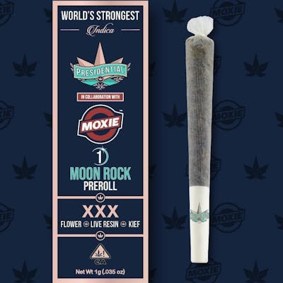 In collaboration with Moxie, Presidential brings you a 1g XXX Moonrock Pre-Roll, made with top-shelf organic flower and infused with Premium THC Distillate and the highest quality kief. Rolled in all-natural unbleached hemp paper, stuffed with the best top-shelf flower, and fitted with a chlorine-free filter to allow for only the smoothest of hits, Presidential’s Moon Rock infused pre-rolls are the only thing you need to elevate your weekend. These premium joints are never rolled, sprayed, or dipped, and are ALWAYS infused with premium distillate and kief.