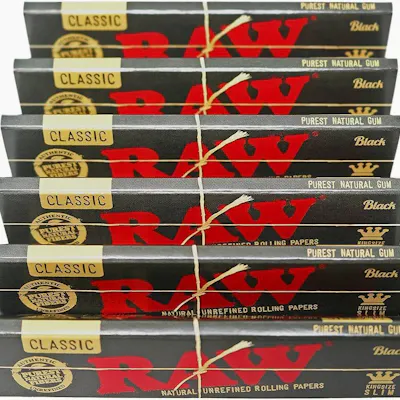 RAW Black King Size Slim are ultra-thin, unrefined rolling papers crafted for connoisseurs, offering RAW’s slowest, cleanest burn. These 110mm, additive-free, natural plant fibers are double-pressed extra-fine to be nearly translucent, highlighting terpenes without altering flavor.