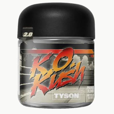 KO Kush by Tyson 2.0 is a potent indica strain known for its heavy, sedative effects, often used for relaxation and sleep. It has a spicy, sweet, and earthy aroma with notes of pine and berry, and a flavor profile that matches, with a sweet berry and gas inhale and an earthy exhale. The strain's high THC content makes it ideal for unwinding after a long day.