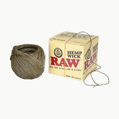 RAW Hemp Wick Ball - 100ft (RAWHEMPWICK100EU ) RAW Hemp Wick is the most natural way to light the purest unrefined rolling papers! Our model is very simple: everything has to be eco-friendly and locally sourced in a responsible way. All RAW Hemp Wick packs, display boxes and cards are also printed on recycled hemp paper. The natural alternative to butane lighters is now available in a 100-ft ball!