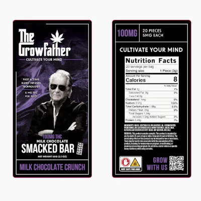 Growfather Smacked – Milk Chocolate Crunch Bar 100mg Nano-Infused THC | 5mg Per Piece | Fast Acting Rich, creamy milk chocolate with a crispy crunch — perfectly dosed at 5mg per piece, so you can ease in or go all-in. This bar is infused with nano-emulsified THC, delivering a fast-acting and smooth onset in just 15–20 minutes. Made for flavor, precision, and punch — The Growfather Smacked bar hits right, without the heavy crash. 🍫 Real milk chocolate + crunchy texture ⚡ Nano-infused for faster, stronger onset 📏 20 pieces x 5mg THC = 100mg total 👌 Smooth, consistent, no cannabis aftertaste 🔥 Designed to smack — every time