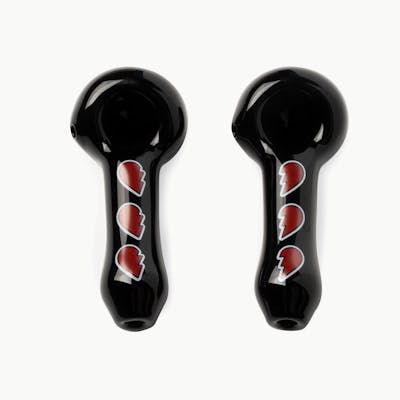 Never be far apart with the Hearts Hand Pipe Set from Red Eye GlassĀ®. Each two-pack is made of 100% borosilicate glass and includes a collectible tin. Perfect for the canna-couple in your life!