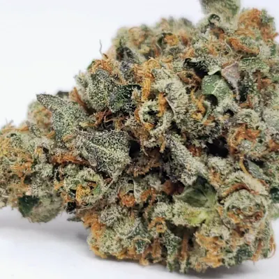 Jet Fuel, also known more commonly by the name “G6,” is a sativa dominant hybrid (70% sativa/30% indica) strain created through crossing the infamous Aspen OG X High Country Diesel strains. The Jet Fuel high smashes into you with an immediate effect felt right in the forehead and behind the eyes. You'll feel euphoric and uplifted with a sense of tingly cerebral energy that can leave you super giggly at times. As your mind soars through the clouds, your body will succumb to a feeling of complete relaxation that doesn't cause sedation or couch-lock, but rather leaves you incredibly lazy. With these powerful effects, Jet Fuel is often a patient choice for treating chronic fatigue, migraines or tension headaches, chronic stress, mood swings, and depression. Jet Fuel has lumpy and flat heart-shaped olive green nugs with furry amber hairs decked in glittering amber crystal trichomes. The flavor is incredibly pungent with a diesel overtone accented by sweet skunk. Jet Fuel's aroma is even stronger, with a pungent diesel effect topped with sweet skunk and pine.