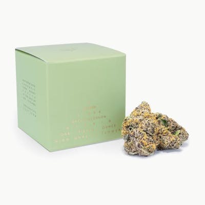 A potent yet gentle hybrid with deep purple undertones and a beautifully dense bud structure. Limonene’s stimulating e!ects perfectly ofset the sedative qualities typically provided by caryophyllene and myrcene, resulting in a functional head high complemented by a general sense of zen and tranquility. Genetics: GMO XI x Bacio Gelato BX1