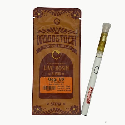 Woodstock's Gogi OG Live Rosin cart delivers the purest sativa expression from this award-winning Bodhi Seeds creation (Nepali OG x Snow Lotus). Expect dynamic flavors of black cherry, berry, strawberry, and Hawaiian punch with hints of licorice—exactly as described. Fresh-frozen at peak harvest, then pressed for natural terpene richness and blended for smooth viscosity. Perfect for creative focus and euphoric energy throughout the day. Experience cannabis purity! The Woodstock Cannabis Company was formed by Woodstock Ventures to extend its iconic brand to the cannabis market, founded by original 1969 festival producers Michael Lang and Joel Rosenman. Its goal is to bring quality products that embody Woodstock's values and are produced in an environmentally sustainable way. The brand channels the spirit of peace, love, and music from the legendary festival that defined a generation. Celebrating 50+ years of counterculture heritage with premium cannabis that honors the Woodstock legacy and its commitment to social consciousness.