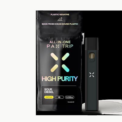 Sour Diesel is a legendary sativa born from New York's 1990s underground scene, tracing its roots to Chemdawg 91 and Super Skunk. Sharp, fuel-soaked citrus and skunky tang hit the nose instantly, driven by limonene, myrcene, and pinene. The flavor punches with sour lemon up front, fading into earthy, gassy depth on the exhale. A fast-acting cerebral rush sparks creativity, energy, and laser focus — the ultimate morning or midday motivator. Rip this rechargeable, plastic-negative PAX Trip and fuel your day with Sour D! Founded in San Francisco by two Stanford design graduates, PAX has spent over a decade redefining how people experience cannabis. Their sleek, award-winning vaporizers — from the iconic ERA platform to the portable MINI and PLUS — heat, never burn, delivering clean, flavorful hits through engineered air paths that keep vapor away from internal electronics. PAX is also the first cannabis brand to achieve Plastic Negative certification across all product lines, partnering with rePurpose Global to remove twice as much plastic from nature as each product uses. Premium technology meets real sustainability — that's PAX.