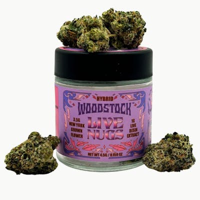 1.0 FULL GRAM of strain-specific powderized live resin concentrate hand-coated on 3.5 grams of New York grown A+ buds to create a one-of-a-kind smoking experience. Grind it, roll it and smoke it just like regular flower. Our proprietary process transforms high terpene live resin concentrate into fine trichome sized powder, preserving terpenes to ensure a full and even coating for an enhanced full-spectrum infusion experience. The Stay Puft flower combined with Black Scotti Live Resin is a balanced and potent Hybrid combo that provides a bright mental state and relieves stress and anxiety! New school infusion technology meets old school flower vibes in Woodstock’s Live Nugs.