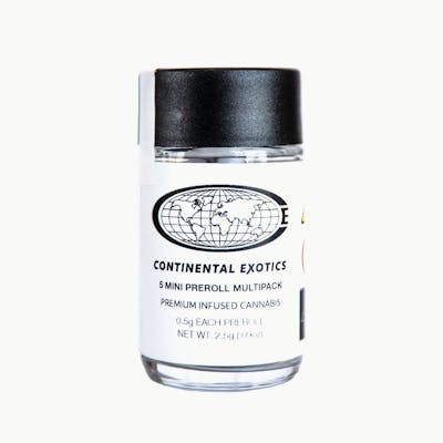 Continental Exotics delivers a decadent duo with this infused pre-roll featuring Fiya Farmer's Sweet Retreat flower enhanced with Medellin live rosin. Sweet Retreat's Zangria × Illmatic genetics bring creamy peach and grape smoothie flavors, while Lemonnade's Wedding Cake × Chemdawg rosin adds pungent fuel and citrus depth. Caryophyllene and limonene spark uplifting euphoria that eases into blissful relaxation. Perfect for afternoon escapes. Treat yourself to this sweet getaway! Continental Exotics is cannabis for life in motion. Founded by two friends who met in the Vermont mountains, this brand was born from chasing quality cannabis between ski runs, film sets, and skate parks. Tired of settling for distillate pens and low-grade pre-rolls, they created products that fit seamlessly into active lifestyles without compromising quality, flavor, or effect. Their lineup features full-spectrum live resin vaporizers with strain-specific, cannabis-derived terpenes and bubble hash infused pre-rolls combining full flower with solventless hash for terpene-rich, high-potency smoke. No synthetic additives. No mystery oils. Just clean, portable cannabis crafted with purpose.