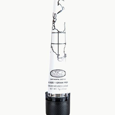 Continental Exotics delivers a decadent duo with this infused pre-roll featuring Fiya Farmer's Sweet Retreat flower enhanced with Medellin live rosin. Sweet Retreat's Zangria × Illmatic genetics bring creamy peach and grape smoothie flavors, while Lemonnade's Wedding Cake × Chemdawg rosin adds pungent fuel and citrus depth. Caryophyllene and limonene spark uplifting euphoria that eases into blissful relaxation. Perfect for afternoon escapes. Treat yourself to this sweet getaway! Continental Exotics is cannabis for life in motion. Founded by two friends who met in the Vermont mountains, this brand was born from chasing quality cannabis between ski runs, film sets, and skate parks. Tired of settling for distillate pens and low-grade pre-rolls, they created products that fit seamlessly into active lifestyles without compromising quality, flavor, or effect. Their lineup features full-spectrum live resin vaporizers with strain-specific, cannabis-derived terpenes and bubble hash infused pre-rolls combining full flower with solventless hash for terpene-rich, high-potency smoke. No synthetic additives. No mystery oils. Just clean, portable cannabis crafted with purpose.