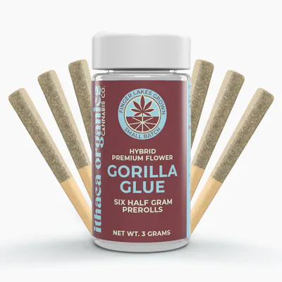ALL PRICES SHOWN INCLUDE TAX! G. Glue (also known as Gorilla Glue) is an indica-dominant hybrid born from the legendary pairing of Chocolate Diesel and Sour Diesel. Its aroma combines sweet-and-sour mocha notes with sharp hints of chemical diesel and pine, while the flavor hits just as bold—delivering a pungent, sour-diesel taste that lingers long after the exhale. Known for its heavy-hitting effects, this cultivar unleashes deep relaxation that melts the body and quiets the mind, leaving you blissfully “glued” to the couch. These pre-rolls are packed with whole, premium, hand-trimmed G. Glue flower—never shake, never trim. Just pure, small-batch craft cannabis, ready to enjoy.