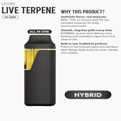 Pink Diesel Live-Terpene by Legend is a gassy, grape-forward vape designed for balanced head-and-body effects. This description is tuned for menus, product pages, and in-store signage. Product overview Pink Diesel Live-Terpene is a hybrid vape that pairs high-potency distillate with strain-specific live cannabis terpenes for true-to-flower flavor and effect. Drawing inspiration from Pink Diesel flower, it delivers a smooth, full-bodied vapor that suits both daytime focus and evening wind-down.