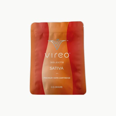 Vireo Selects vape cartridges are filled with a blend of premium-quality distillates and terpenes. Vireo Selects vape cartridges come in Indica, Sativa, & Hybrid varieties to deliver a tailored experience. The primary active ingredient in this product is delta-9-tetrahydrocannabinol (THC). -- Contains: Cannabis Oil and Pineapple Express Terpenes (ß-Caryophyllene, a-Humulene, Myrcene, a-Bisabolol, ß-Pinene). -- Sativa -- THC: 435 mg/cartridge CBD: <5% -- (Battery sold separately)