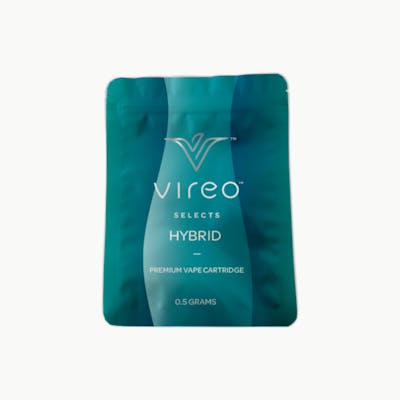 Vireo Selects vape cartridges are filled with a blend of premium-quality distillates and terpenes. Vireo Selects vape cartridges come in Indica, Sativa, & Hybrid varieties to deliver a tailored experience. The primary active ingredient in this product is delta-9-tetrahydrocannabinol (THC). -- Contains: Cannabis Oil and Strawberry Diesel Terpenes (Myrcene, a-Pinene, ß-Caryophyllene, D-Limonene, ß-Pinene). -- Hybrid -- THC: 435 mg/cartridge CBD: <5% -- (Battery sold separately)