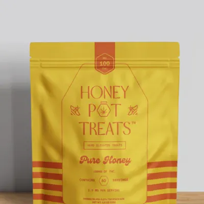 Honey Pot Treats’ Pure Honey Drops are crafted with raw local honey and infused with Sour Diesel, a classic sativa lineage prized for its energizing and uplifting effects. Microdosed with 2.5 mg THC, each Pure Honey Drop delivers a light and balanced blend of cannabinoids alongside terpenes like limonene, myrcene, and pinene, known to ease tension while brightening your mood. Designed to soothe the throat and steady the mind, they dissolve slowly for a sweet, steady calm. Go ahead, savor the sweetness!