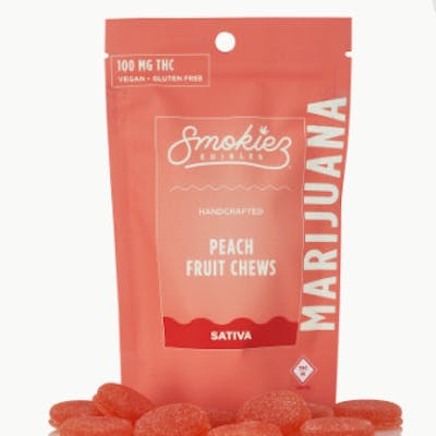 Smokiez Terpene-Enhanced Sativa Peach Fruit Chews are NOT YOUR AVERAGE GUMMY™ These delicious Fruit Chews are a tasty and satisfying way for your customers to medicate! They are also Vegan, Gluten-Free, Dairy-Free, and contain NO High Fructose Corn Syrup. Each of our mouth-watering Fruit Chews contains 10 mg of THC, and are made with our high clarity cannabis distillate for great taste. There are 10 pieces per package with 100 mg active THC per package. Smokiez Fruit Chews come in 5 delicious flavors and have both sweet and sour flavor profiles that your customers are sure to love!
