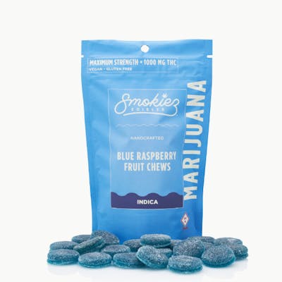 Smokiez Maximum Strength Blue Raspberry Fruit Chews are NOT YOUR AVERAGE GUMMY™ These delicious Fruit Chews are a tasty and satisfying way for your customers to medicate! They are also Vegan, Gluten-Free, Dairy-Free, and contain NO High Fructose Corn Syrup. Each of our mouth-watering Fruit Chews contains 50 mg of THC, and are made with our high clarity cannabis distillate for great taste. There are 20 pieces per package with 1000 mg active THC per package. Smokiez Fruit Chews come in 5 delicious flavors and have both sweet and sour flavor profiles that your customers are sure to love!