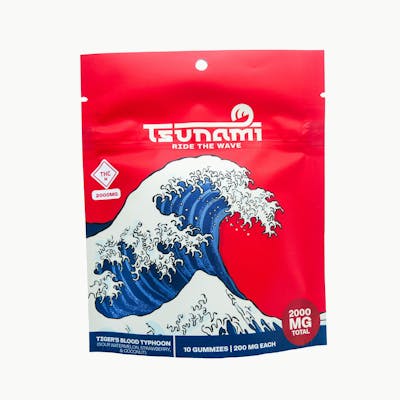 200 MG THC per piece | 10 pieces per bag Snow cone nostalgia with a gummy twist: A time-tested blend of sour watermelon, coconut and strawberry. Tsunami is crafted from premium ingredients, a proprietary blend of sugars, naturally derived flavors and utilizes a slow-cure process to ensure a market leading profile in consistency, taste and texture. The oversized pieces provide as much flavor as possible in a high-dose gummy, as well as give enough substance to be able to be cut down into smaller doses. Edibles typically take longer to show effects than other methods of THC intake. Please dose responsibly.
