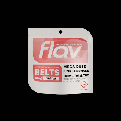 Flav’s best-selling belts just got better with Megadose available in 7 tart flavors. Discover mouthwatering bliss with Flav’s 100mg Live Resin infused gummy belts.