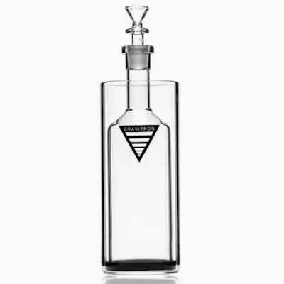 The Gravitron creates big, efficient hits though gravity and pressure. Start by filling the base halfway with water. Then pack the bowl with dry herb and insert it into the joint at the neck of the bottle. Light the bowl and lift the bottle at the same time. Once the bottle is full of smoke, remove the bowl and place your mouth over the neck, inhaling as you lower the bottle. The Gravitron will give you a dense, pressurized hit with no loss of smoke in the process.