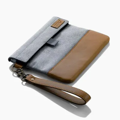 The GRAV® Smell-Proof Pouch is the perfect accessory for storing everything you need for a great smoke sesh. It comes in gray durable fabric with your choice of brown or black vegan leather accents. The clip on vegan leather wrist loop makes the pouch easy to carry or to attach to a larger bag. The bag is held closed by strong velcro as well as a rubber lined zipper that keeps smells locked inside. The inside has two roomy mesh pockets with enough space for your stash as well as a lighter, a hand pipe, and even a snack. The inside of the pouch also has 100% carbon lining, making the smell-proof security even stronger. The GRAV® Smell-Proof Pouch is a must-have for any on the go smoking adventure.