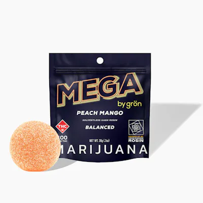 Let this one teleport your tastebuds. Peach Mango MEGA bursts with sun-drenched peach and lush mango, finished with a tart snap that keeps you coming back. Smooth, bright, and built for feel-good escapes, whether you're on a beach or just pretending to be. Made With Real Fruit • Soy-Free • Gluten-Free • Solventless Hash Rosin 1/10 MEGA PEARL PER SERVING | 10 SERVINGS PER PACKAGE