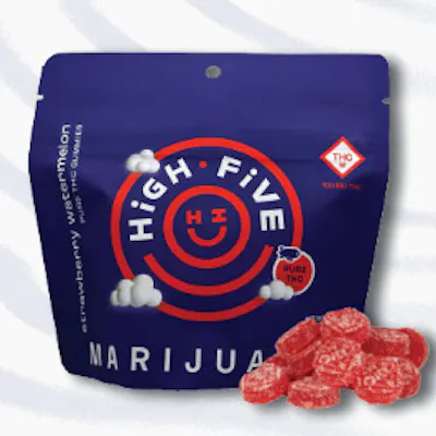 Strawberry Watermelon tastes like a deliciously sweet combination of fresh strawberries and juicy watermelon! High Five Cannabis Pure THC gummies are expertly crafted in Teal Labs’ cannabis kitchen. We have partnered with some of the brightest minds in gummy manufacturing, formulation, and flavoring to bring you the Huckleberry Lemonade, Strawberry Watermelon, Strawberry Lemonade, and Sweet Watermelon Pure THC gummies. Each pack of High Five Pure THC gummies consists of 20 gummies at 5mg of THC per gummy. Make your precise dosing easier with our 5mg gummies! Enjoy responsibly.