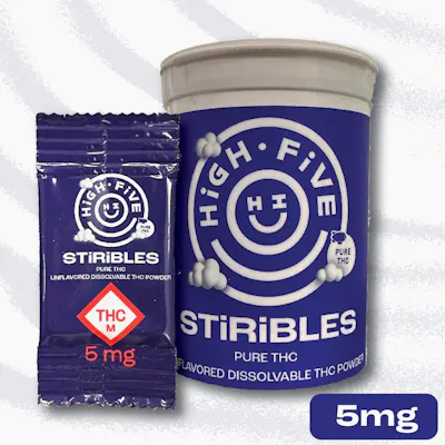 High Five Cannabis recently added STiRiBLES to our family of products! This fully water-soluble THC powder is a great addition to any water-based drink. While we most recommend adding it to a glass of water for best results, the powder should still dissolve in most drinks, hot or cold. We also recommend getting creative and trying it in whatever you’d like, from mashed potatoes to pasta to anything you can imagine!