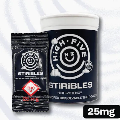 High Five Cannabis recently added STiRiBLES to our family of products! This fully water-soluble THC powder is a great addition to any water-based drink. While we most recommend adding it to a glass of water for best results, the powder should still dissolve in most drinks, hot or cold. We also recommend getting creative and trying it in whatever you’d like, from mashed potatoes to pasta to anything you can imagine!