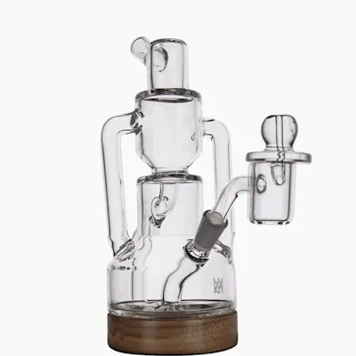Introducing the Apex Mini Rig, a pinnacle of craftsmanship within MJ Arsenal's illustrious Alpine series. Designed with meticulous precision, this mini rig embodies the perfect harmony of form and function. Its compact yet sophisticated design, adorned with tasteful Milled Black Walnut accents, elevates your smoking setup to new heights of elegance. Equipped with a 10mm quartz bucket and connection, the Apex Mini Rig delivers smooth, flavorful hits with every session. Its innovative double uptake recycler ensures maximum filtration, providing a silky-smooth smoking experience that's second to none. Crafted from high-quality materials, the Apex Mini Rig boasts durability and resilience, making it a reliable companion for your smoking adventures. Cleaning is a breeze, thanks to its thoughtfully engineered design, allowing you to spend less time on maintenance and more time enjoying your favorite herbs. Experience the epitome of style and performance with the Apex Mini Rig from MJ Arsenal, where sophistication meets innovation for an unparalleled smoking experience. Material: 100% Borosilicate Glass, Milled Black Walnut Joint: 10mm Dimensions: 7.4" x 4.1" What’s in the box: 1x Apex Mini Rig 1x 10mm Quartz Bucket 1x Flat Carb Cap 1x MJA Dab Tool