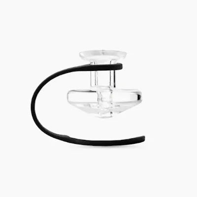 The Puffco Peak Carb Cap & Tether is an official accessory for the original Puffco Peak vaporizer, designed to enhance performance. Made from hand-blown borosilicate glass, the cap increases air velocity and provides directional airflow, leading to more efficient vaporization and maximized vapor production. The included silicone tether secures the cap to the atomizer, preventing loss or damage. This combination offers improved functionality and convenience for users seeking to optimize their concentrate sessions with the original Peak device.
