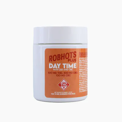 Experience the perfect daytime blend with our Robhots Plus line, delivering consistent and precise dosing for your well-being. This 10-pack features gummies infused with 10mg of THC, 20mg of CBD, and 10mg of CBC in each gummy. Crafted for daytime use, enjoy the balanced effects of THC and the therapeutic benefits of CBD and CBC. The pack offers three enticing flavors - Peach, Pomegranate, and Tangerine - ensuring a delightful and tailored experience. With Robhots Plus Day Time Gummies, find focus, relaxation, and relief in every bite. Elevate your daytime routine with gummies designed for consistent dosing and optimal well-being. Flavors Included: Peach Pomegranate Tangerine Product Breakdown (dosage info): 10x 10mg THC, 20mg CBD & 10mg CBC Gummies